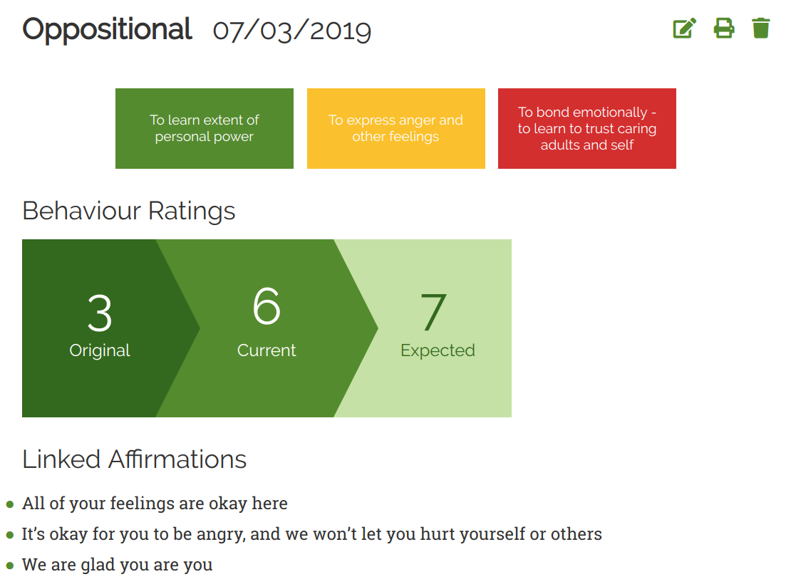 The result is an individual behaviour development support plan which can then be reviewed to celebrate progress and identify any subsequent next steps.